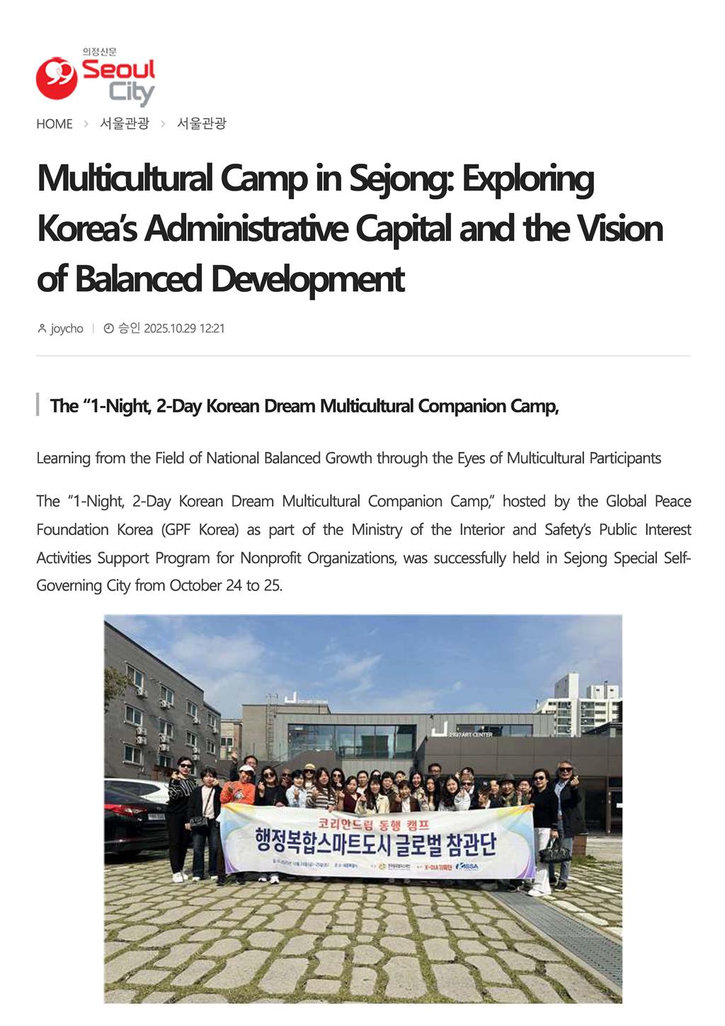 [의정신문 서울시티] Multicultural Camp in Sejong: Exploring Korea’s Administrative Capital and the Vision of Balanced Development